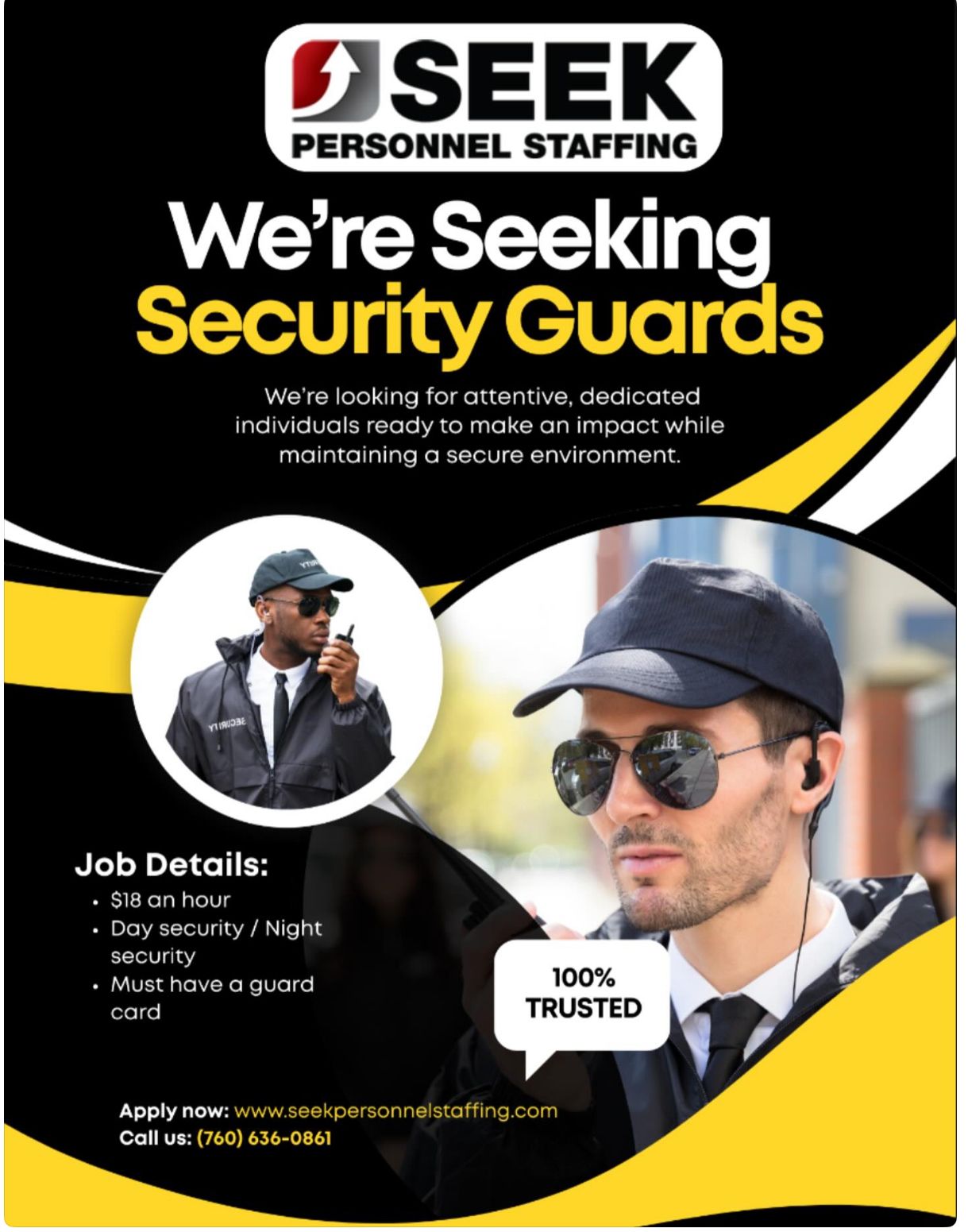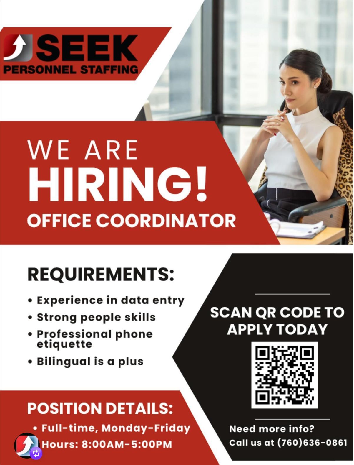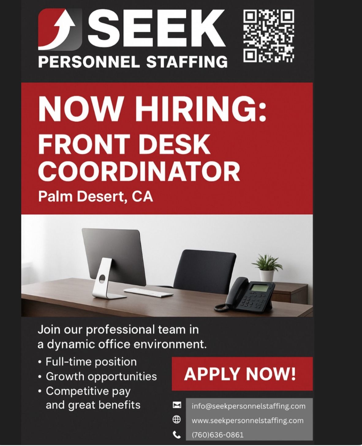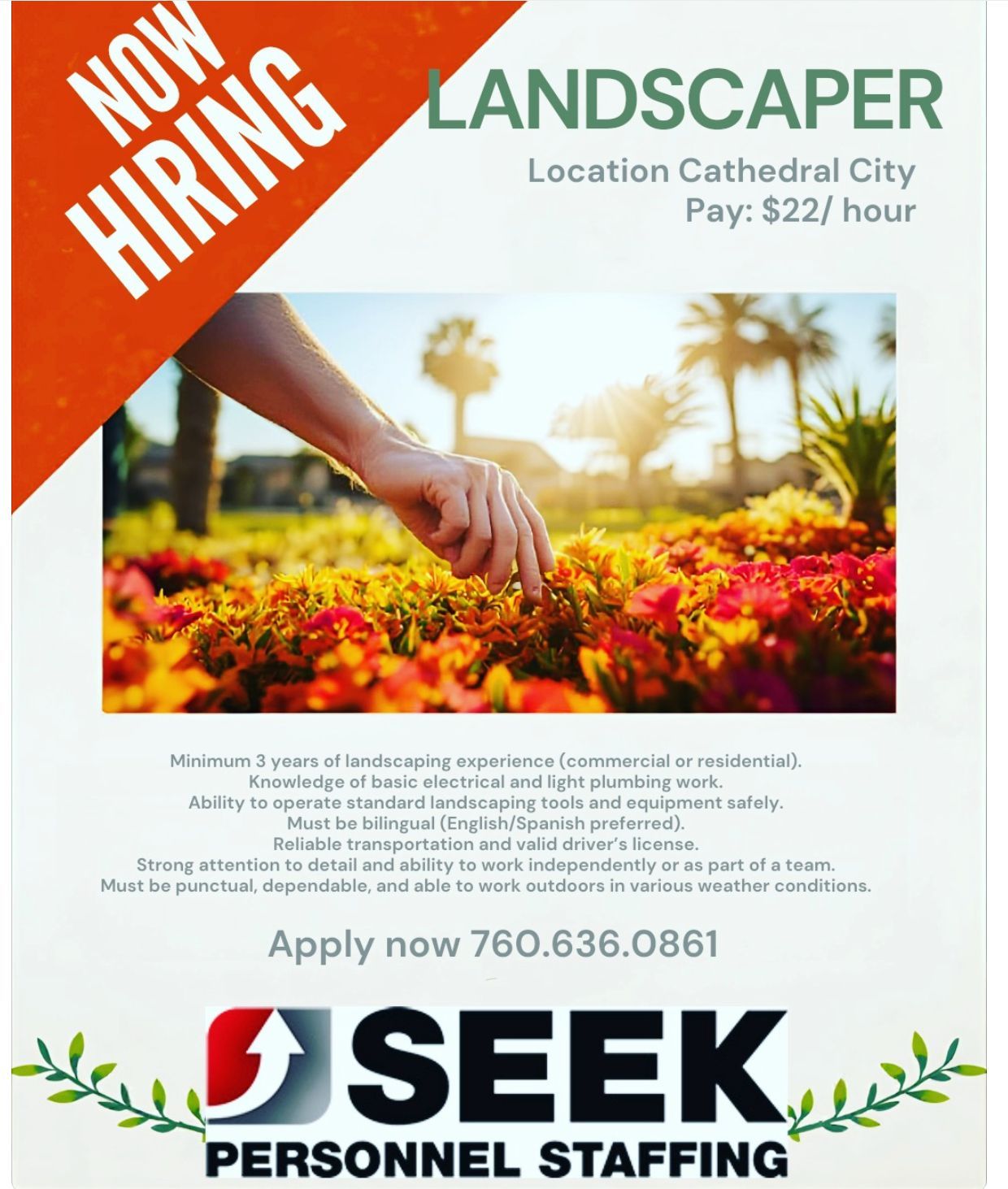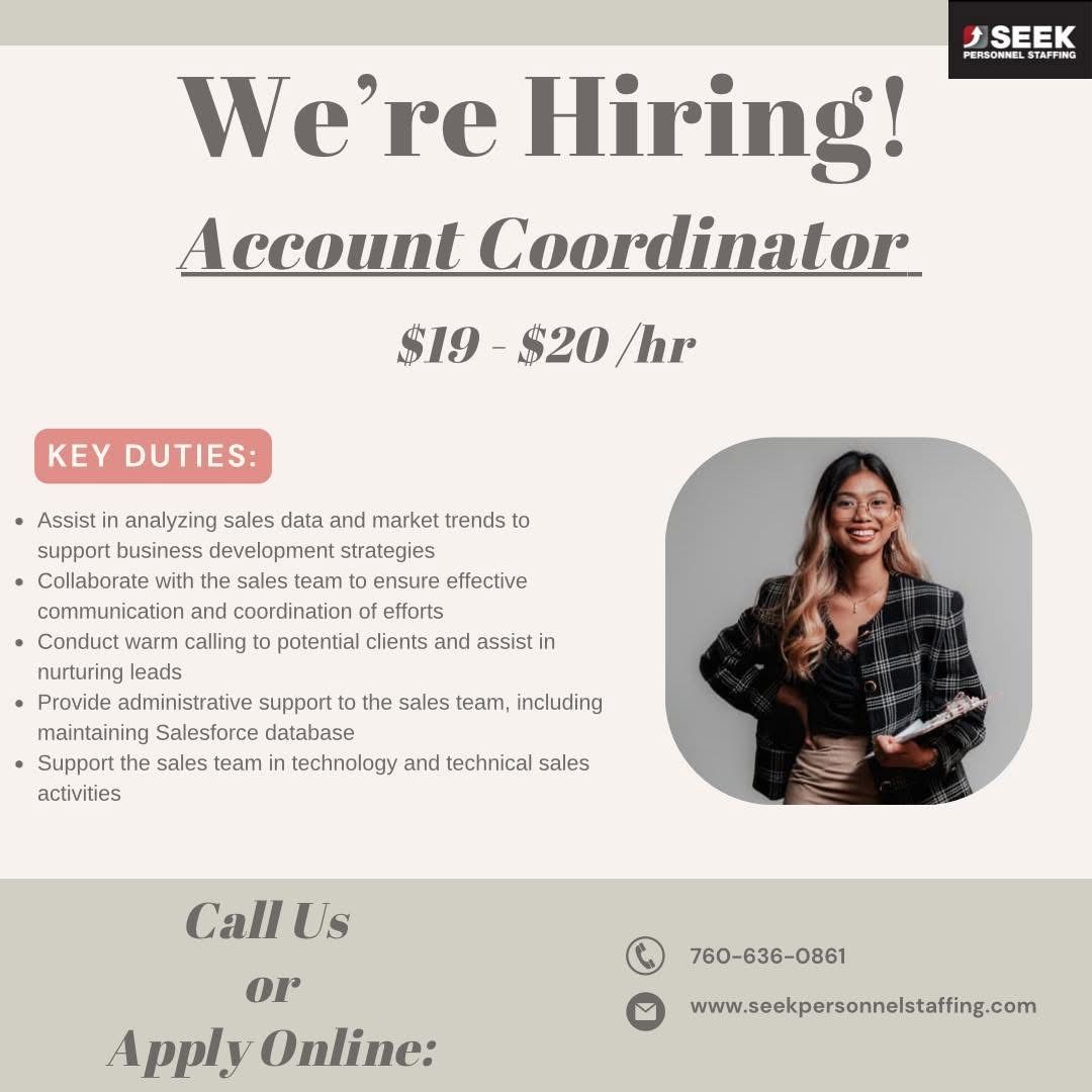 760-636-0861 for immediate assistance and click open positions for immediate job openings.